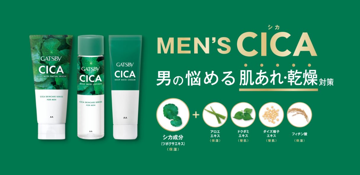 そんなCICA成分配合商品が、メンズコスメブランドの代表格であるギャツビーからこんなにも早く登場したということはちょっとした時代感のあるニュースでございます。