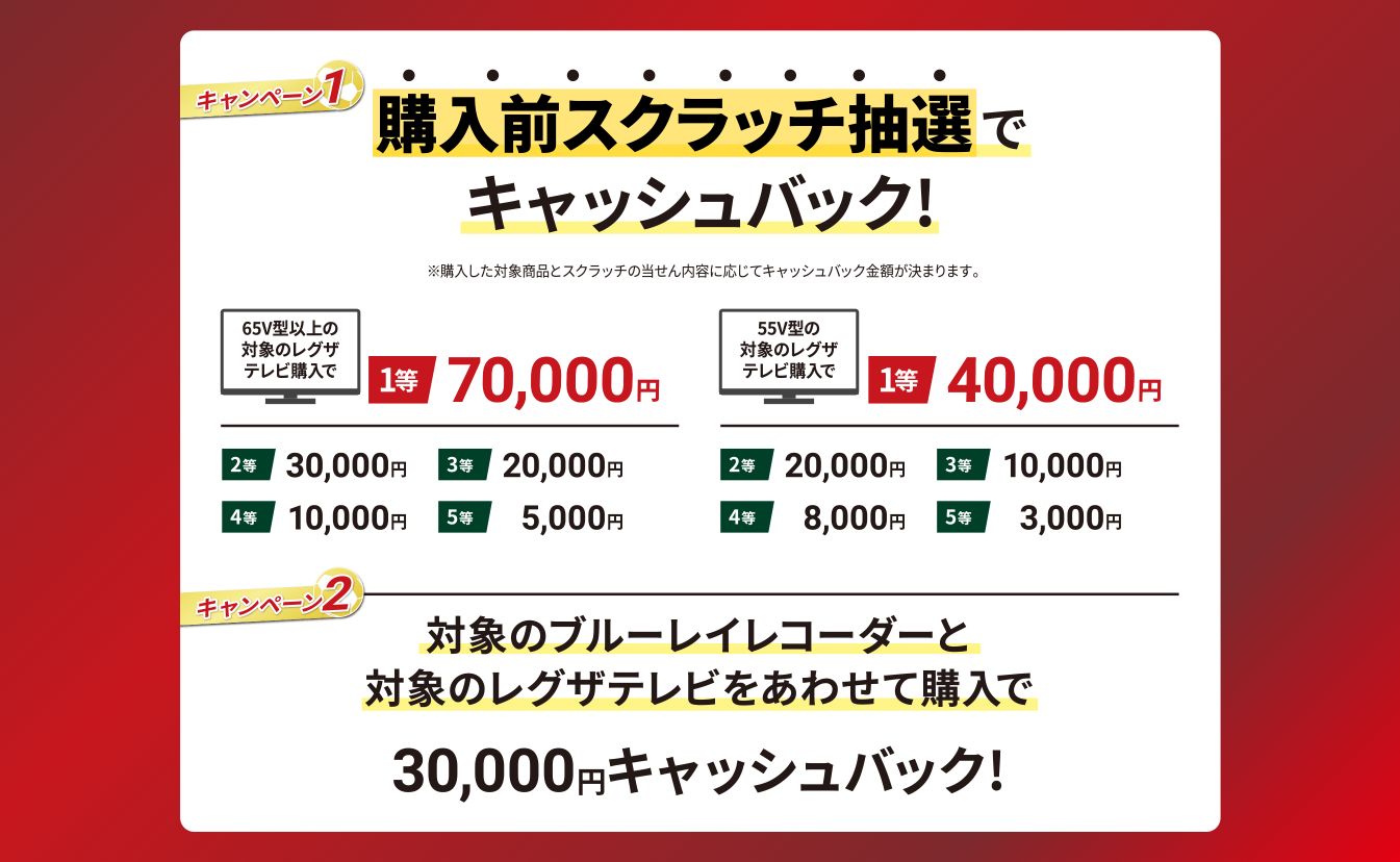 ▼REGZA「購入前スクラッチ抽選」キャンペーン